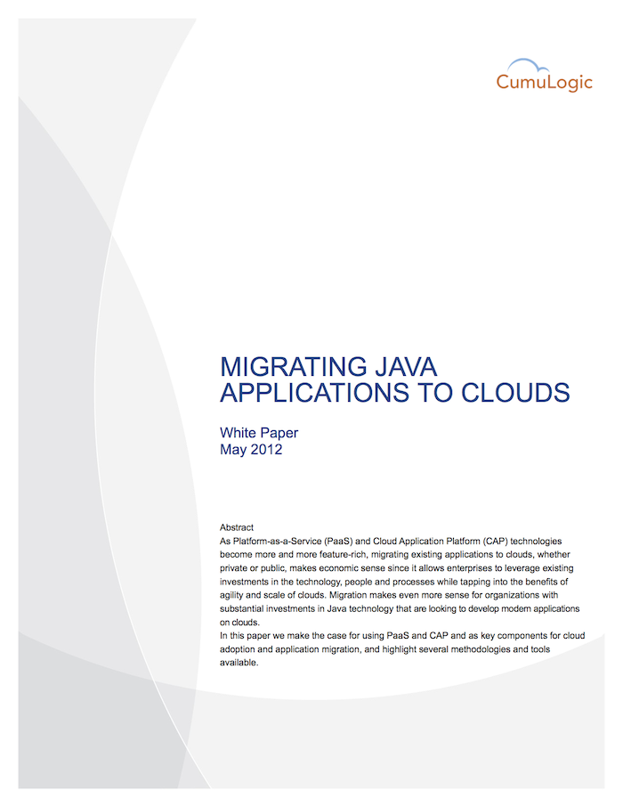 As Platform-as-a-Service (PaaS) and Cloud Application Platform (CAP) technologies become more and more feature-rich, migrating existing applications to clouds, whether private or public, makes economic sense since it allows enterprises to leverage existing investments in the technology, people and processes while tapping into the benefits of agility and scale of clouds. Migration makes even more sense for organizations with substantial investments in Java technology that are looking to develop modern applications on clouds.